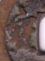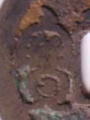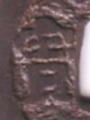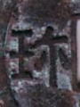 工宝 日本鐚銭・天下手祥符通宝 16世紀 これも九州地方のビタ銭です。「工」にみえます。他に、「立」、「北」、「非」などに見えるものもあります。 |