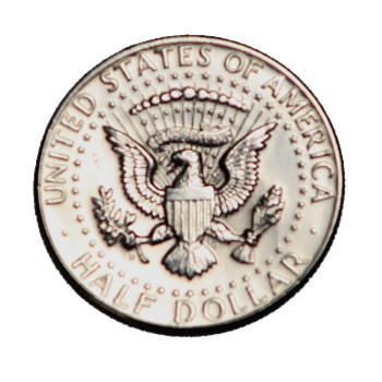 1964年に50セント銀貨はケネディにかわりましたが、そのころから素材の銀の価格が高騰し、1965年に50セントと25セント銀貨は、表面だけ薄い銀で蔽い、中心層は銅というクラッドコインになりました。 表と裏は銀色ですが、真横からみると銅色のコインになったのです。