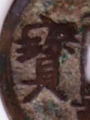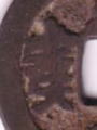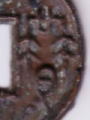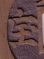 工宝 日本鐚銭・天下手祥符通宝 16世紀 これも九州地方のビタ銭です。「工」にみえます。他に、「立」、「北」、「非」などに見えるものもあります。 |