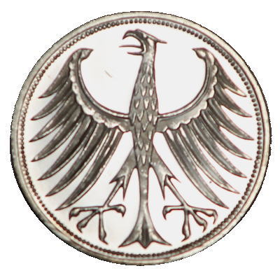 ドイツでは、5マルク銀貨が1950年から1974年まで発行されていましたが、1975年に白銅のクラッド貨になりました。